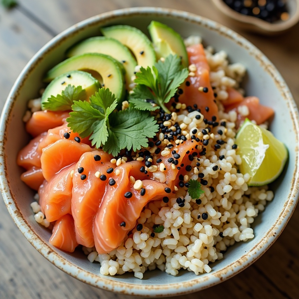 - Sirve el poke bowl de inmediato y disfruta de esta explosión de sabores.