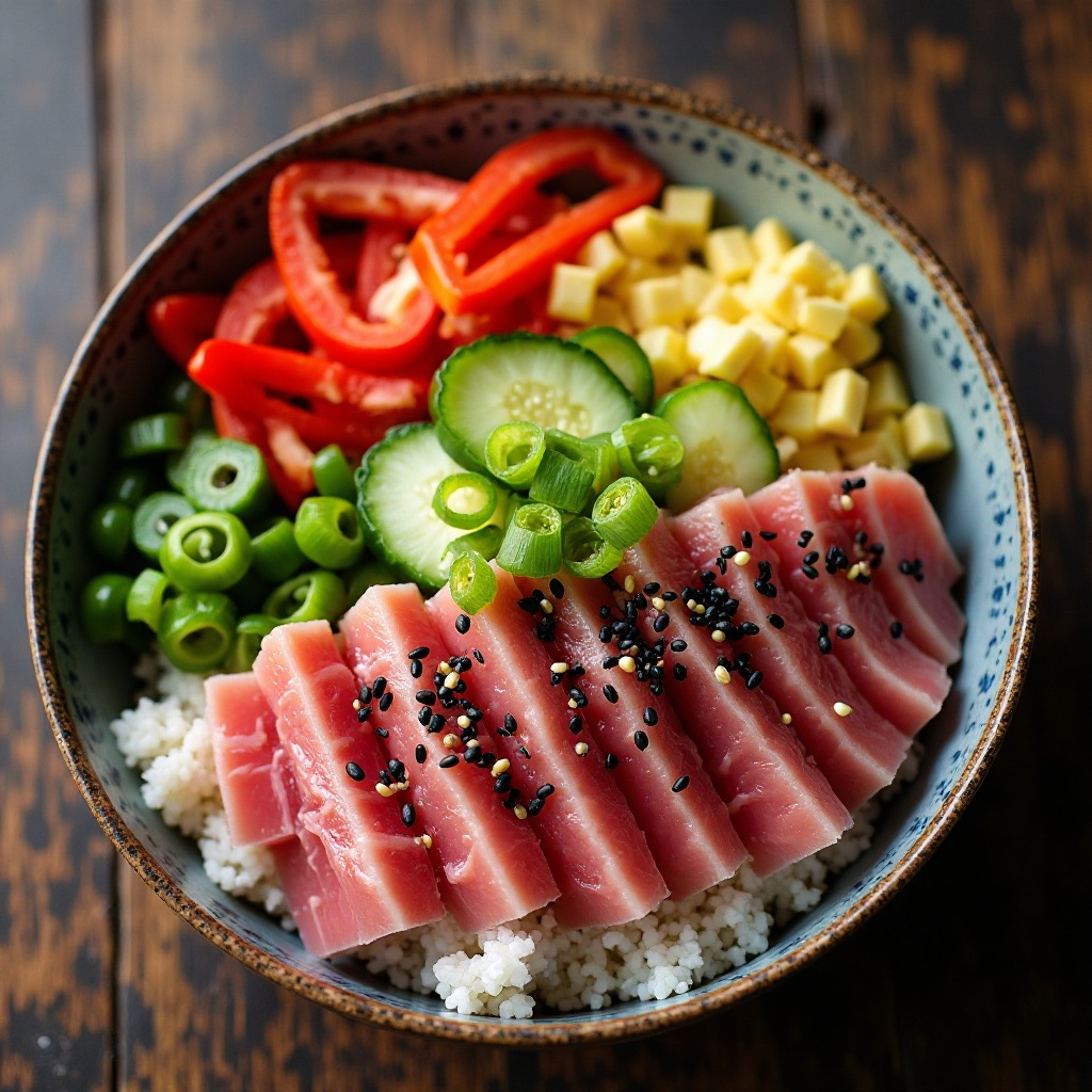 El poke bowl es una opción saludable debido a su alto contenido de proteínas magras del pescado, junto con las vitaminas y minerales que provienen de los vegetales frescos. El atún utilizado en esta receta es rico en ácidos grasos omega-3, esenciales para la salud cardiovascular. Reduce el aceite de oliva si prefieres una versión más ligera, aunque el sésamo aporta un sabor y textura únicos al plato.