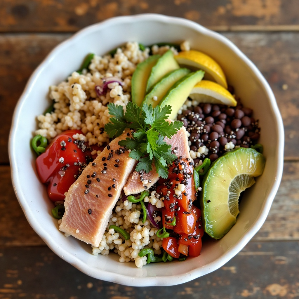 El Poke Bowl es un plato saludable que ofrece proteínas de calidad gracias al pescado, y está lleno de antioxidantes y fibra gracias a los vegetales frescos. La salsa de soja baja en sodio ayuda a mantener el contenido salado a un nivel bajo. Si buscas opciones más ligeras, puedes reducir el tamaño del pescado o incluir más vegetales.