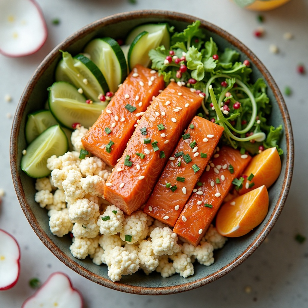 Receta de Poke Bowl de Salmón a la Coliflor en el Estilo de Honolulu, Hawai