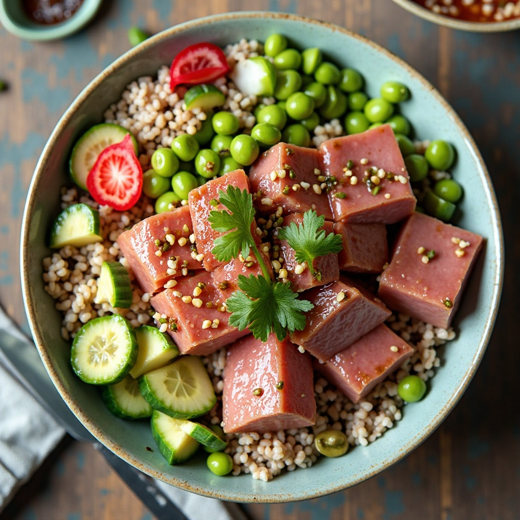 Kailua, conocida por su escena turística y su proximidad al mar, ha adoptado el poke bowl como una parte integral de su cultura gastronómica. La isla de Oahu, hogar de Kailua, es famosa por ser el corazón de la cultura hawaiana moderna, donde la fusión de tradiciones indígenas con influencias occidentales se refleja en cada plato, incluido el poke bowl. Esta receta captura ese espíritu, utilizando ingredientes frescos y locales para ofrecer una experiencia culinaria auténtica pero también adecuada para las paladas más contemporáneas.