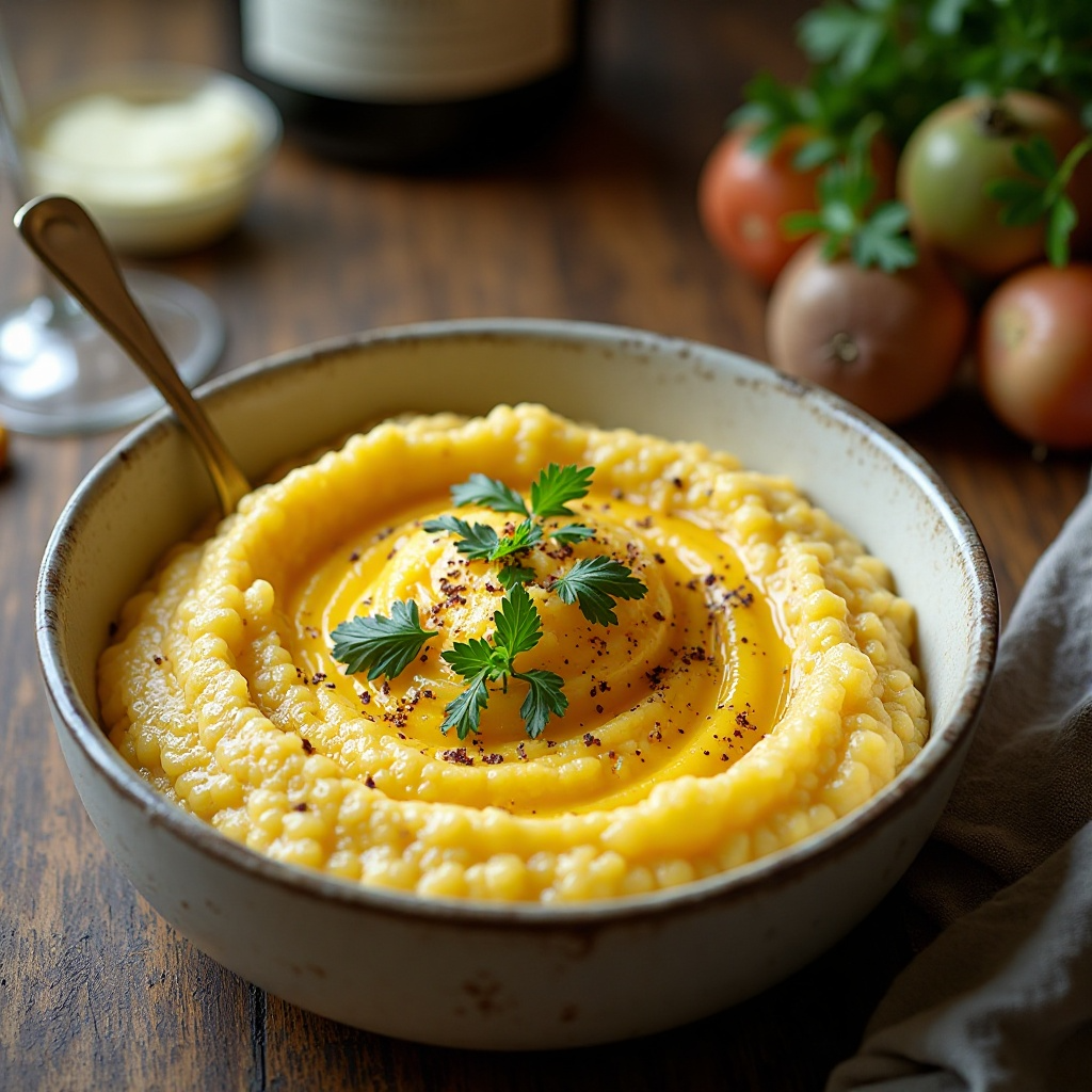 La polenta es un excelente plato para una alimentación saludable, rica en fibra y bajo en grasas. El vino utilizado en esta receta aporta antioxidantes y puede mejorar la digestión. Asegúrate de usar un vino italiano de buena calidad, que será más beneficioso para la salud que los vinos de baja calidad. Si prefieres evitar el alcohol, puedes omitir el vino y usar agua adicional para cocinar la polenta.