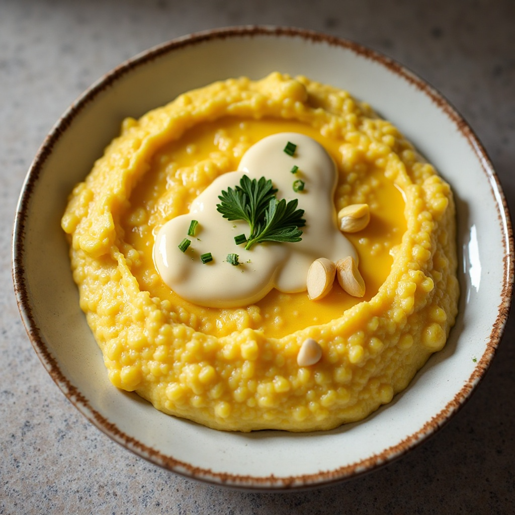 - Sirve la polenta caliente en platos pequeños y acompáñala con la fonduta caliente. Espolvorea con piñones y perejil picados para agregar un toque crujiente y fresco.