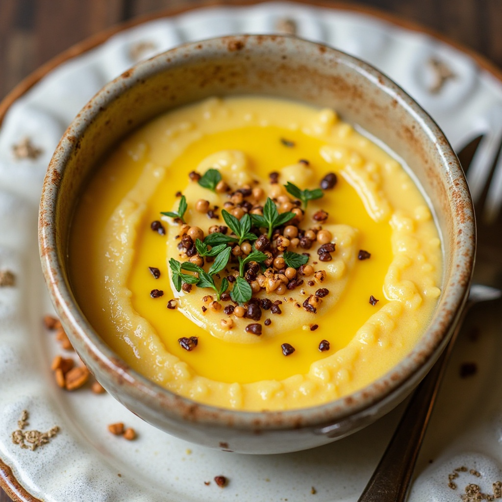 - Retira del fuego y deja reposar unos 5 minutos antes de procesar en un procesador de alimentos o licuadora hasta obtener una consistencia suave y cremosa, similar a la masa de la polenta.