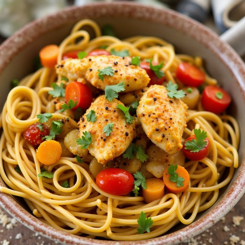 El pollo a la Utica es una receta típica de la región de Utica, Nueva York, en Estados Unidos. Esta versión especial incorpora espagueti, transformando el plato en un guiso lleno de sabor y textura rica. Perfecto para aquellos que buscan una comida reconfortante con toques internacionales, este plato es ideal para compartir en cualquier momento del día.