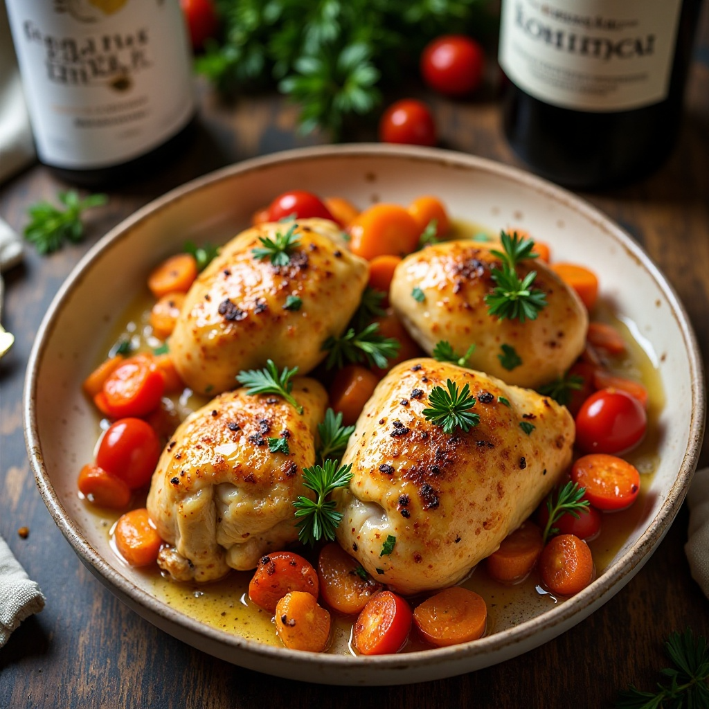 Rocca di Papa es un pintoresco pueblo en Italia conocido por su rica historia y su deliciosa cocina. Esta receta de pollo se inspira en la simplicidad y el sabor de los ingredientes locales, destacando el vino de los Castelli Romani, una región vinícola cercana famosa por sus robustos vinos de uva tempranillo. Perfecto para una cena familiar o un almuerzo festivo, este plato combina sabores mediterráneos con notas distintivas del vino italiano.