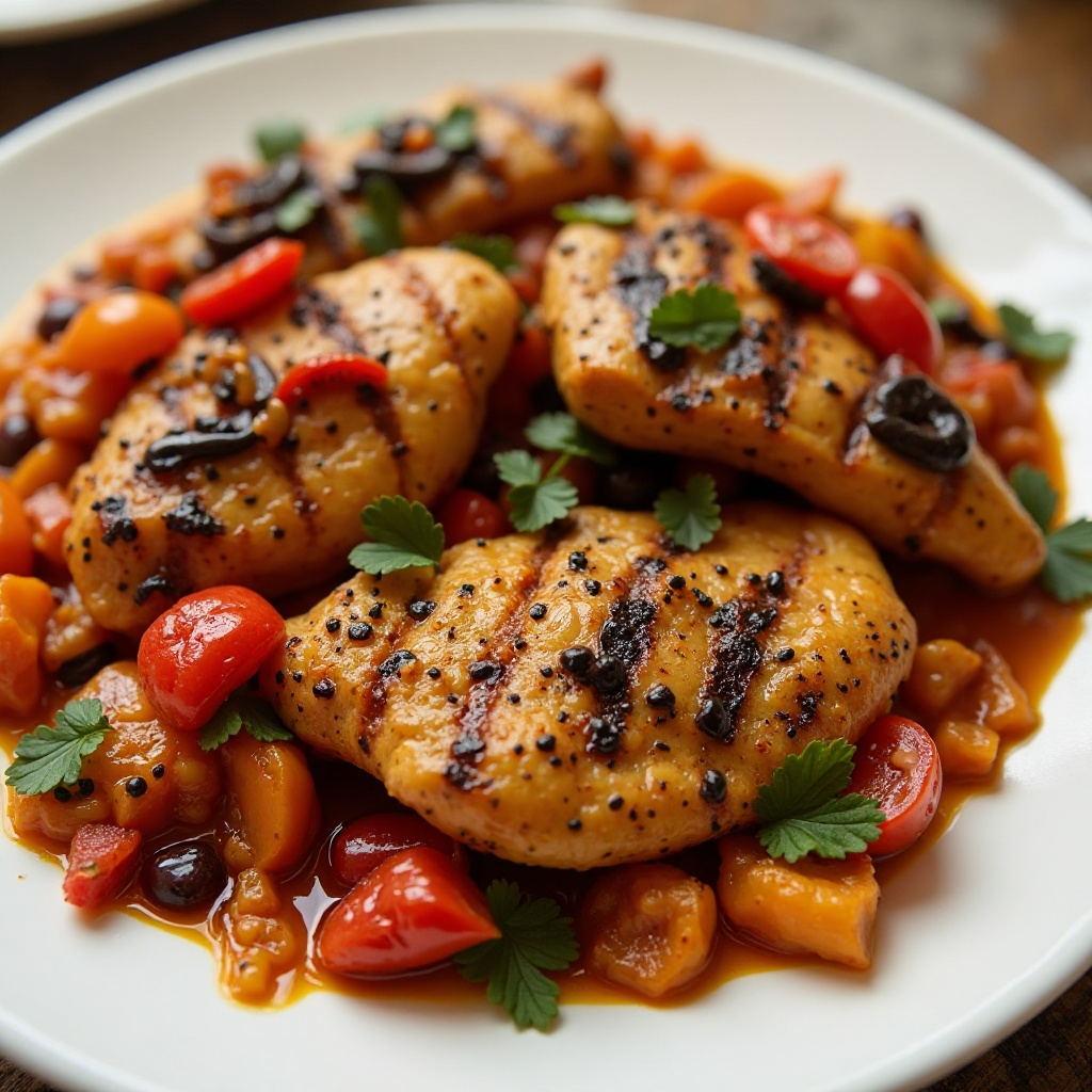 Receta de Pollo al Grill con Salsas de Mopane Worms y Mahalapye