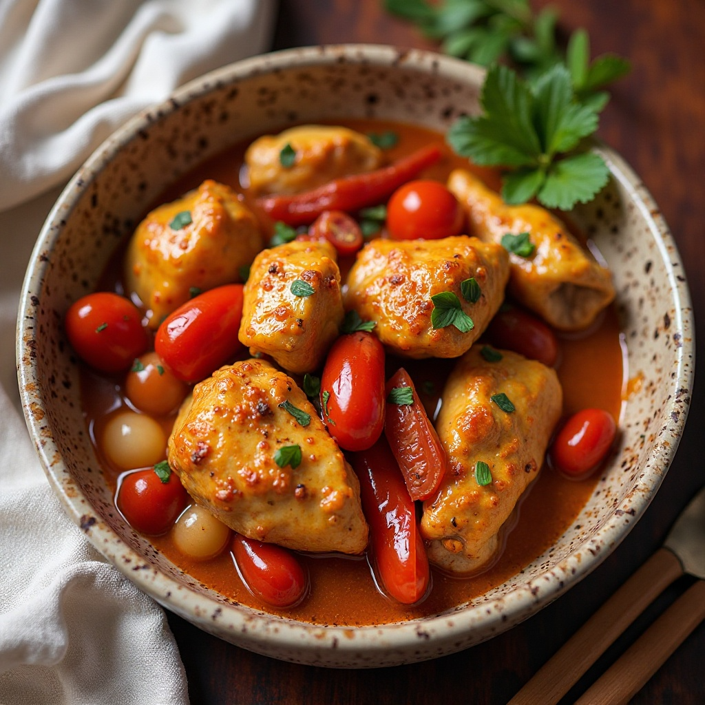 El pollo al pimiento es una receta típica de Guinea Ecuatorial, que se disfruta no solo en la región de Mongomo sino también en muchas partes del país. Esta preparación combina el sabor suave y jugoso del pollo con la intensidad del pimiento, creando un plato lleno de matices. Es ideal para compartir en una comida familiar o como opción principal en cualquier ocasión.