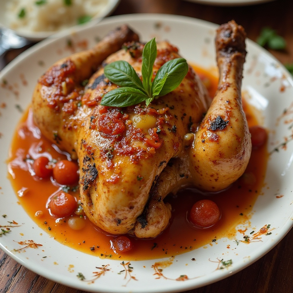- Sirve el pollo con su salsa caliente, adornado con albahaca fresca si lo deseas. Este plato es ideal para acompañar con arroz blanco o pan italiano.