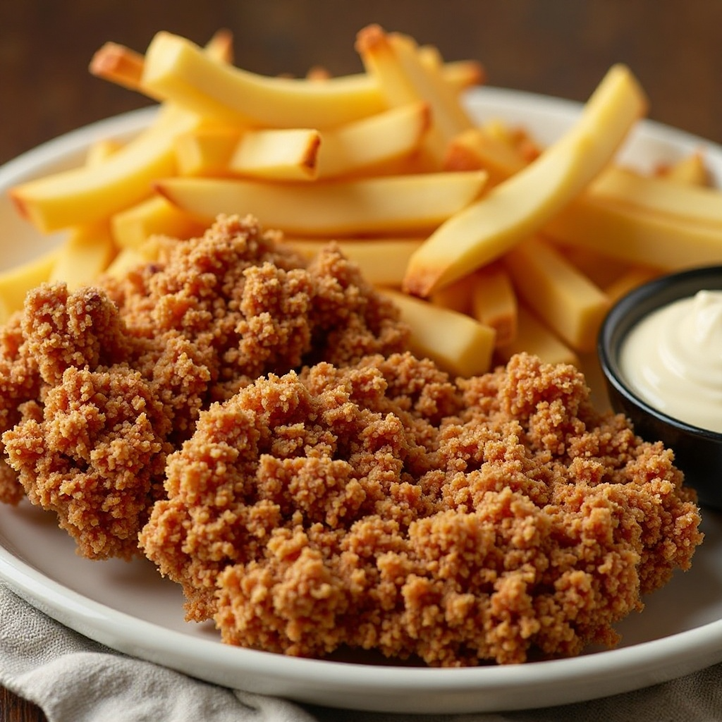 7. Sirve caliente con una cucharada de salsa tártara o mayonesa a elección. Disfruta tu plato de pollo frito típico de Texas!