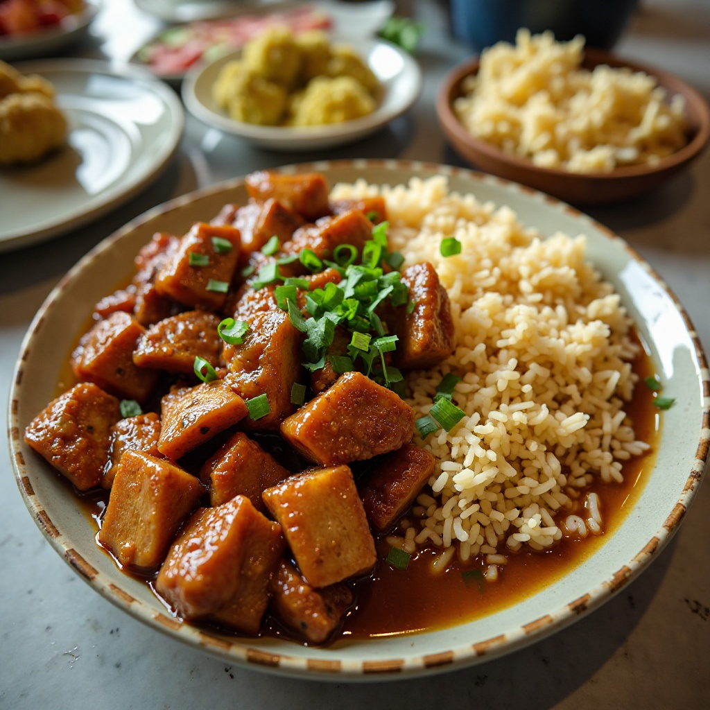 El Pork Adobo es un plato emblemático de Filipinas, conocido por su rica salsa de vinagre y especias. Este adobo tradicional se origina en el norte del país, pero ha ganado popularidad en todo Manila, donde se sirve comúnmente con Arroz Congrí, arroz frito que agrega una textura crujiente y un toque adicional de sabor. Esta receta es ideal para quienes disfrutan de sabores intensos y aromáticos.