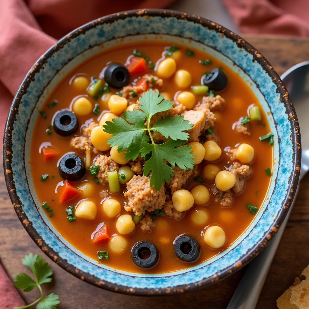 7. Sirve la sopa caliente con cilantro fresco picado. Considera agregar aceitunas negras para una textura crocante y un toque de acidez adicional.