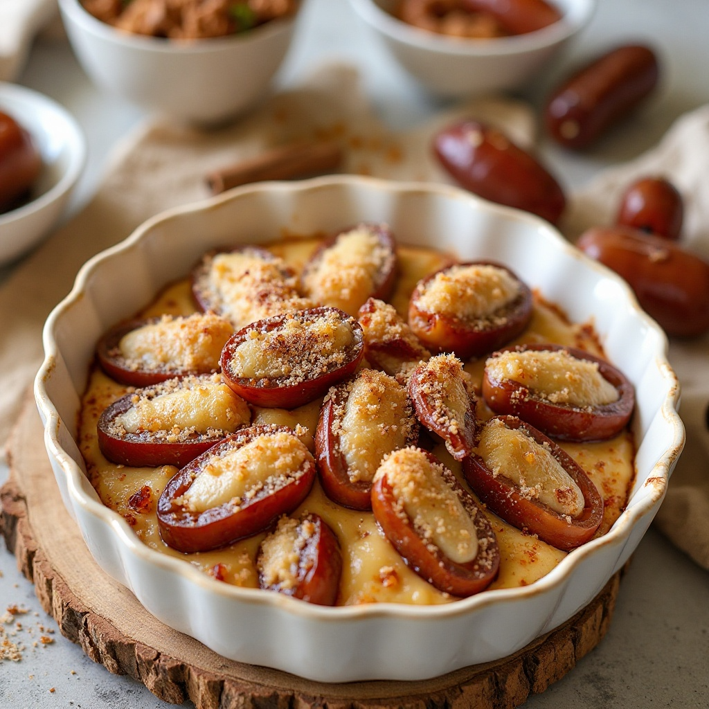 Este postre es una fuente rica en fibra y energía debido a los dátiles. La canela y el extracto de almendra añaden un toque saludable con sus propiedades antioxidantes. Sin embargo, debido al azúcar moreno, este postre debe disfrutarse como parte de una dieta equilibrada. Para adaptarlo a necesidades dietéticas específicas, se pueden considerar alternativas sin azúcar o reducir la cantidad de azúcar utilizada.