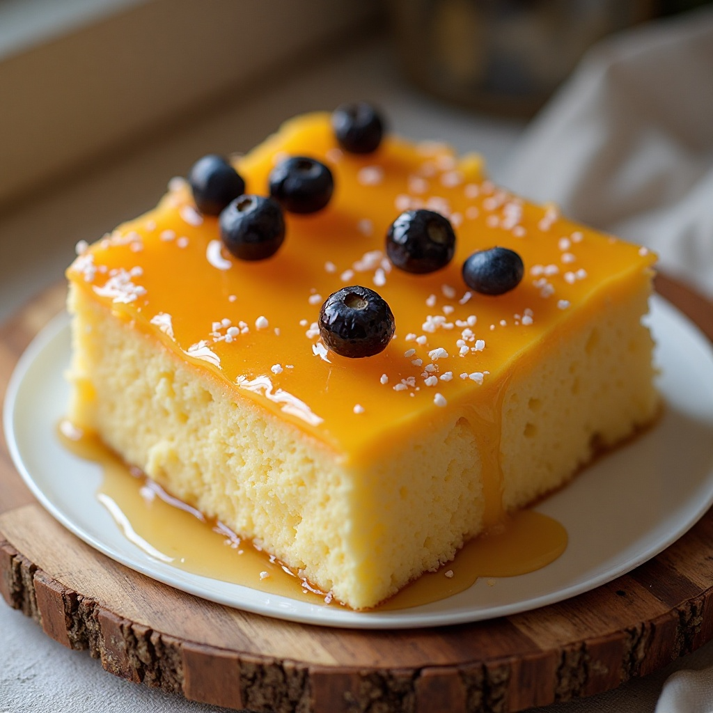 6. En un molde previamente engrasado, vierte la mezcla del postre y hornea a 180°C durante unos 35-40 minutos, o hasta que esté dorado y firme al tacto.