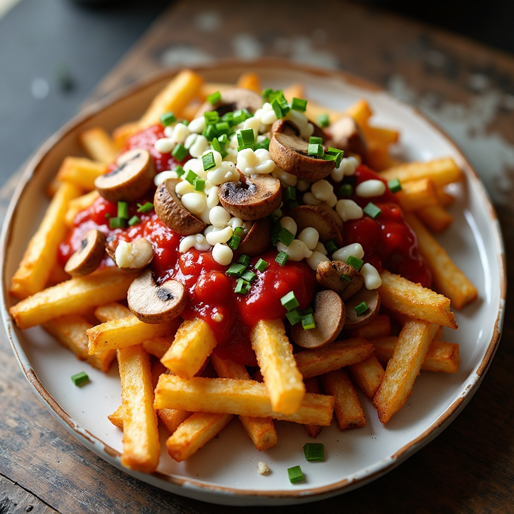 Esta versión de poutine es rica pero equilibrada, ya que incorpora proteínas magras como el tocino y champiñones. El queso curado proporciona calcio, y las papas fritas, aunque altas en calorías, son una parte popular de la dieta canadiense. Si se desea una opción más ligera, se puede reducir la cantidad de queso o sustituirlo por una versión baja en grasa.
