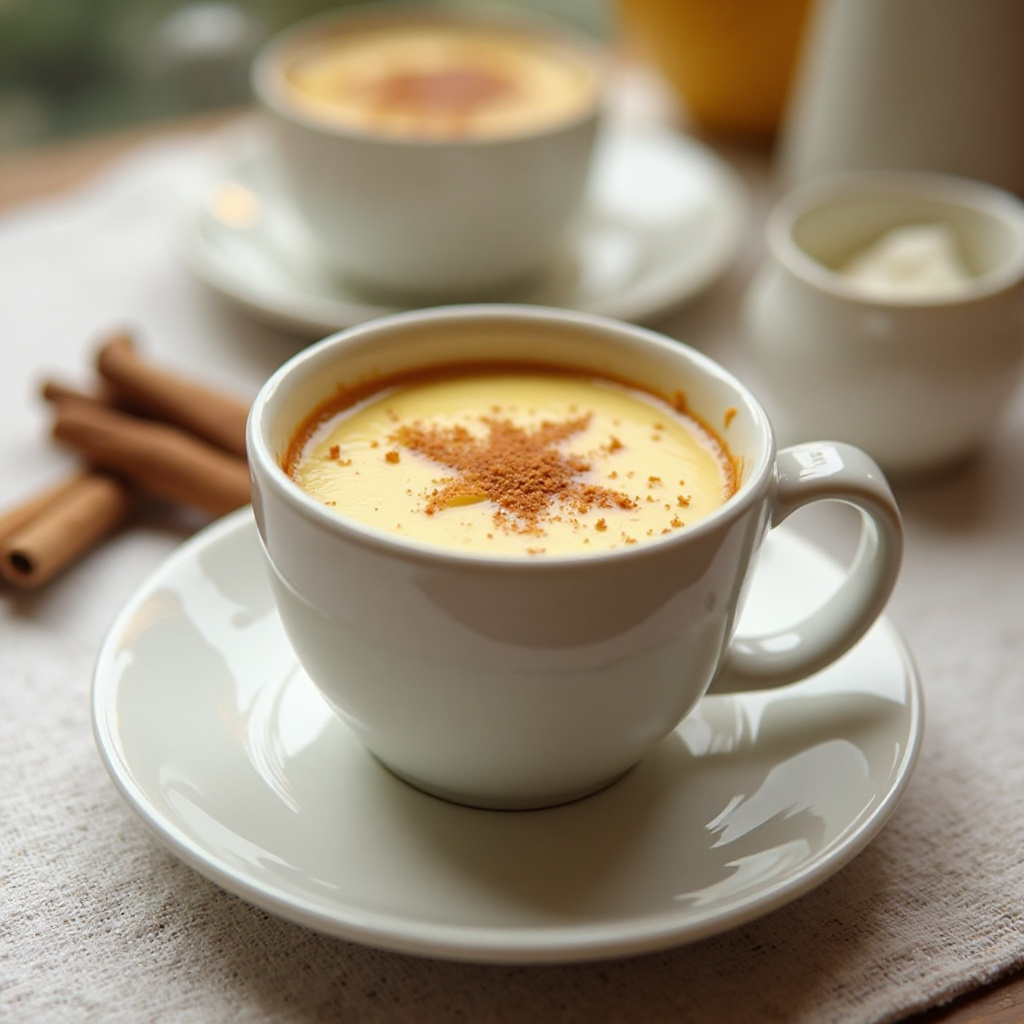 El Pudim Abade de Priscos es un dulce tradicional portugués que refleja la rica herencia culinaria del país. La inclusión del maicena y la canela añade un toque auténtico, mientras que esta versión en taza de café permite disfrutar de este clásico de manera más íntima y accesible. En Portugal, los postres suelen ser ocasión para reuniones familiares, simbolizando amor y comunidad. Este pudim, con su textura suave y aroma a canela, cumple ese papel de unión y celebración en cualquier momento del día.
