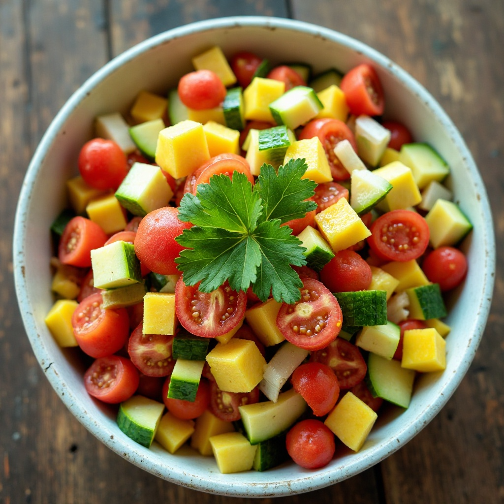 El Pulaka es una raíz tropical que es un alimento básico en la dieta de Tuvalu, particularmente en las islas de Vaitupu. Esta receta presenta un plato fresco y vibrante que utiliza el Pulaka como ingrediente central, combinándolo con vegetales locales para crear una ensalada colorida y llena de sabor.