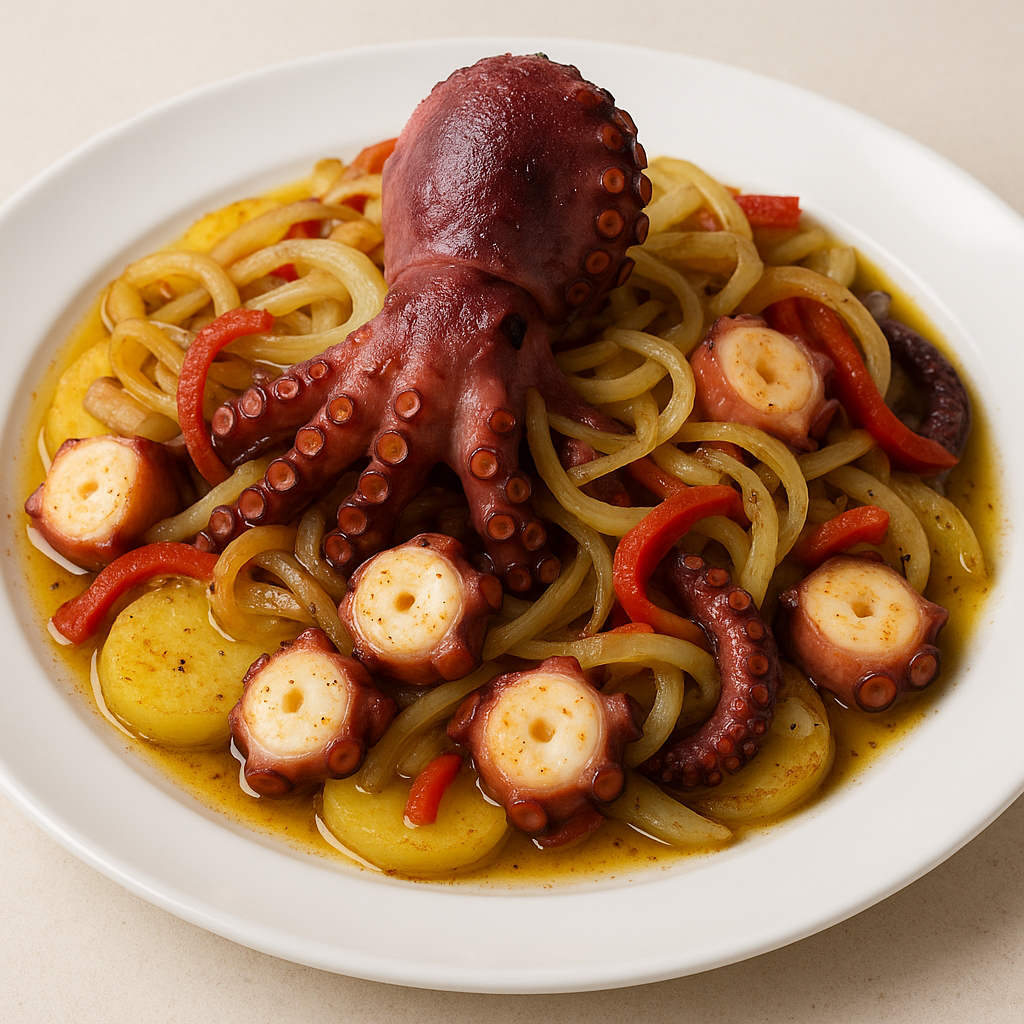 En Vilagarcía de Arousa, en la Ría de Arousa, el pulpo a la marinera es un plato emblemático. Aunque esta versión es más típica de otra zona gallega, adaptar el pulpo con ingredientes locales como las patatas y el pimentón refleja la versatilidad culinaria de Galicia. Este plato es una celebración del marisco fresco y la sencillez de la cocina gallega.