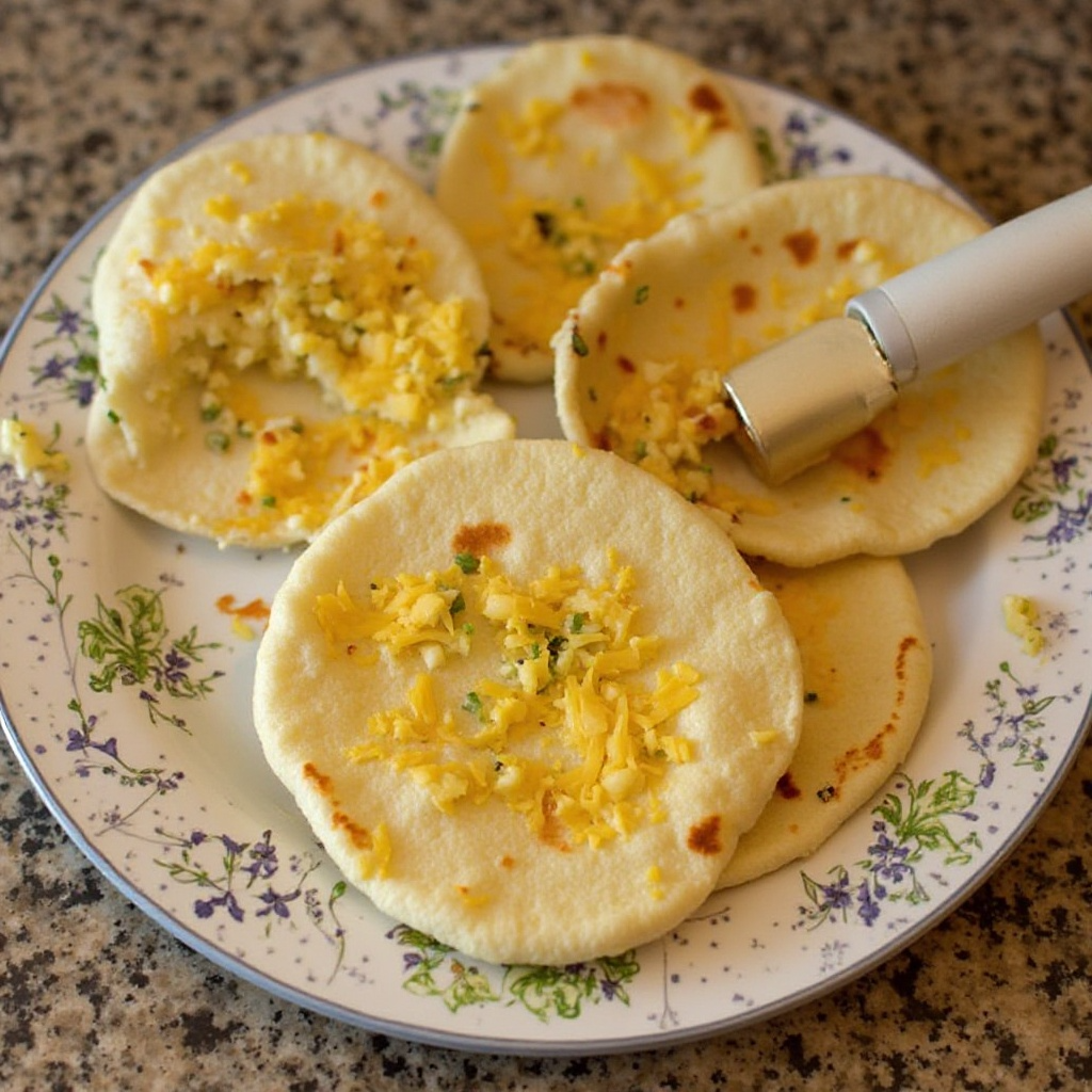 - Coloca un poco de queso fresco en el centro de cada disco de masa.