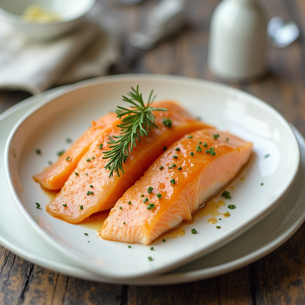 El salmón es una fuente rica en omega-3, esencial para la salud cardiovascular y el cerebro. Los Quenelles, al ser bajos en grasa y ligeros, son un complemento ideal para esta receta saludable. La mantequilla utilizada se puede sustituir por una mantequilla baja en sodio o margarina sin sal para ajustar la dieta.