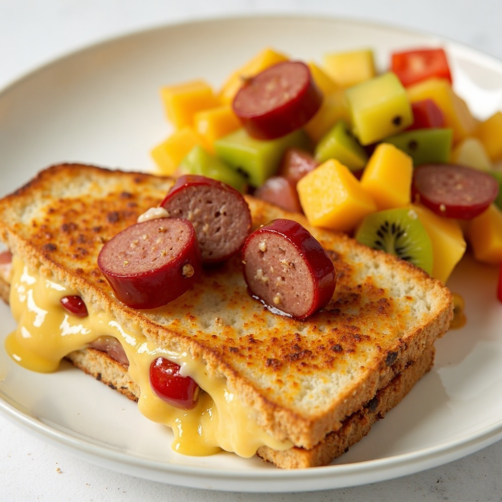 Este plato ofrece proteínas de alta calidad a través del queso y las salchichas. Las frutas tropicales aportan vitaminas y antioxidantes esenciales. Para una opción más saludable, considera utilizar queso bajo en grasa o pollo en lugar de salchichas.