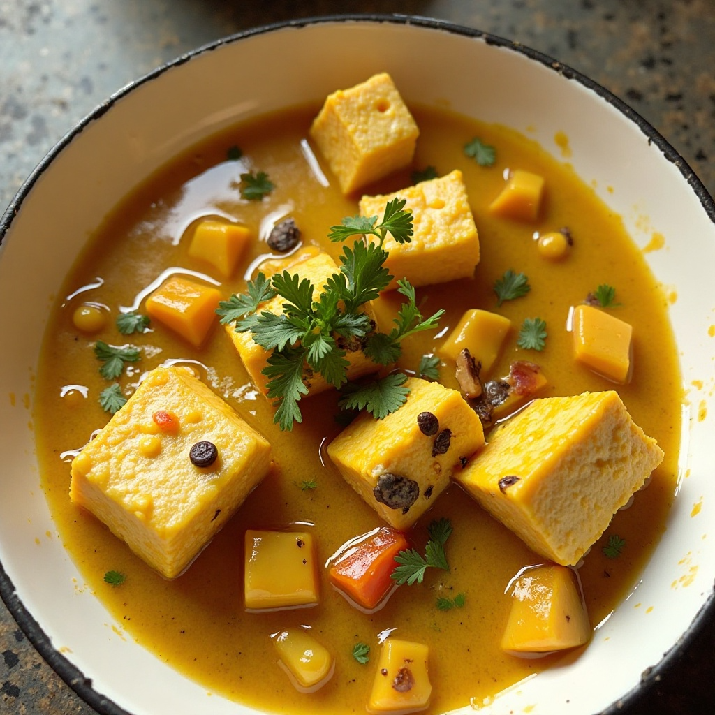 5. Corta el queso de cabra en cubos pequeños y añade a la mezcla de curry caliente. Revuelve suavemente para asegurar que el queso se caliente sin derretirse demasiado.