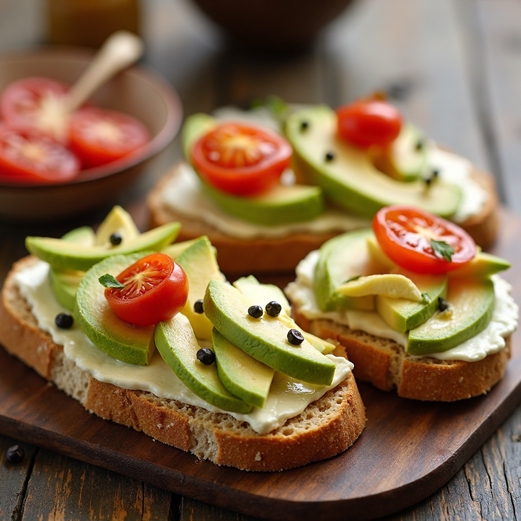 El queso de cabra es bajo en grasa y alto en proteínas, con una excelente digestión. El aguacate aporta grasas saludables que son esenciales para el corazón y la piel. Además, los tomates son ricos en antioxidantes, lo que contribuye a la salud general.