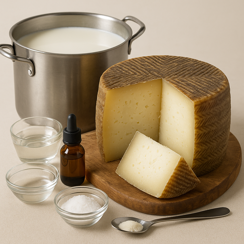 - 1/4 de cucharadita de cuajo (líquido o en polvo, según indicaciones del fabricante)
