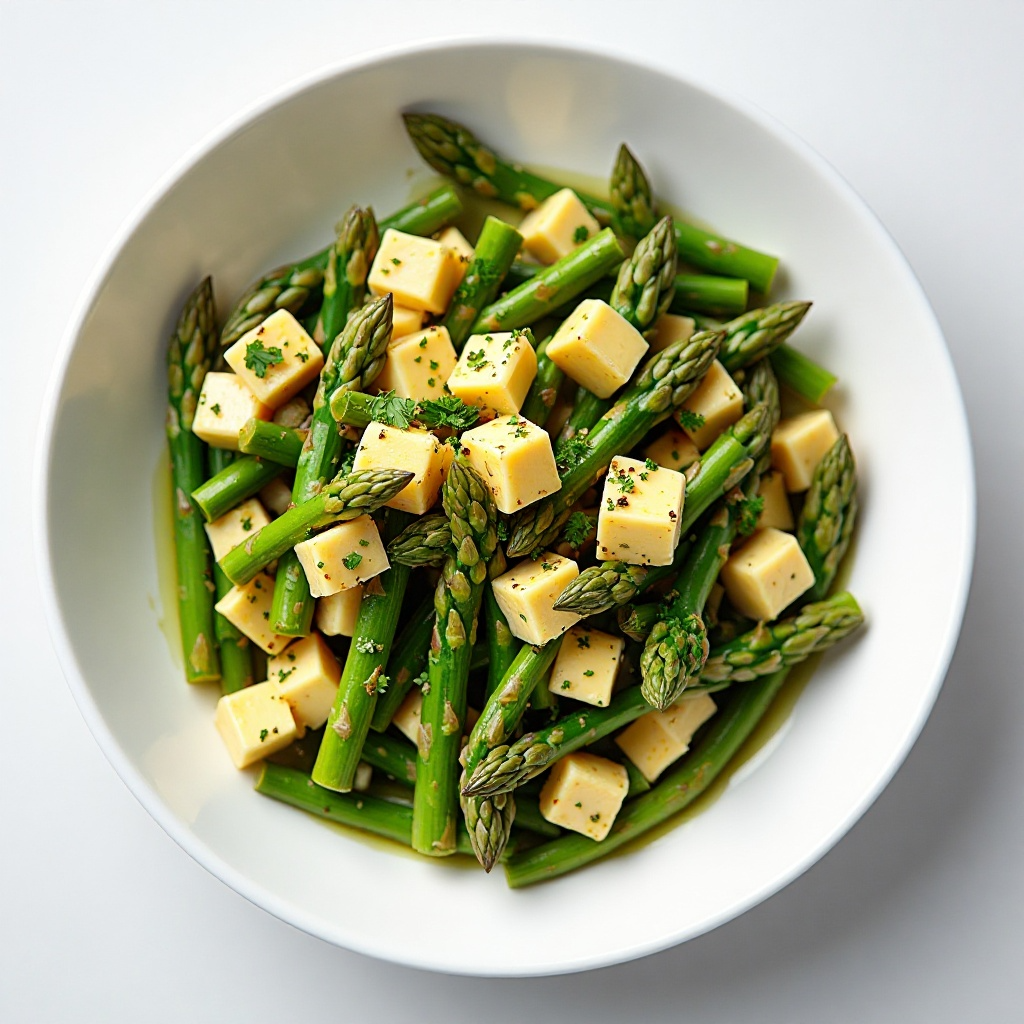 - Una vez los espárragos estén listos, retira la sartén del fuego y agrega los cubos de queso de tetilla. Deja que el calor del aceite funda el queso sin dejarlo demasiado tiempo para evitar que se queme o pierda su textura suave.