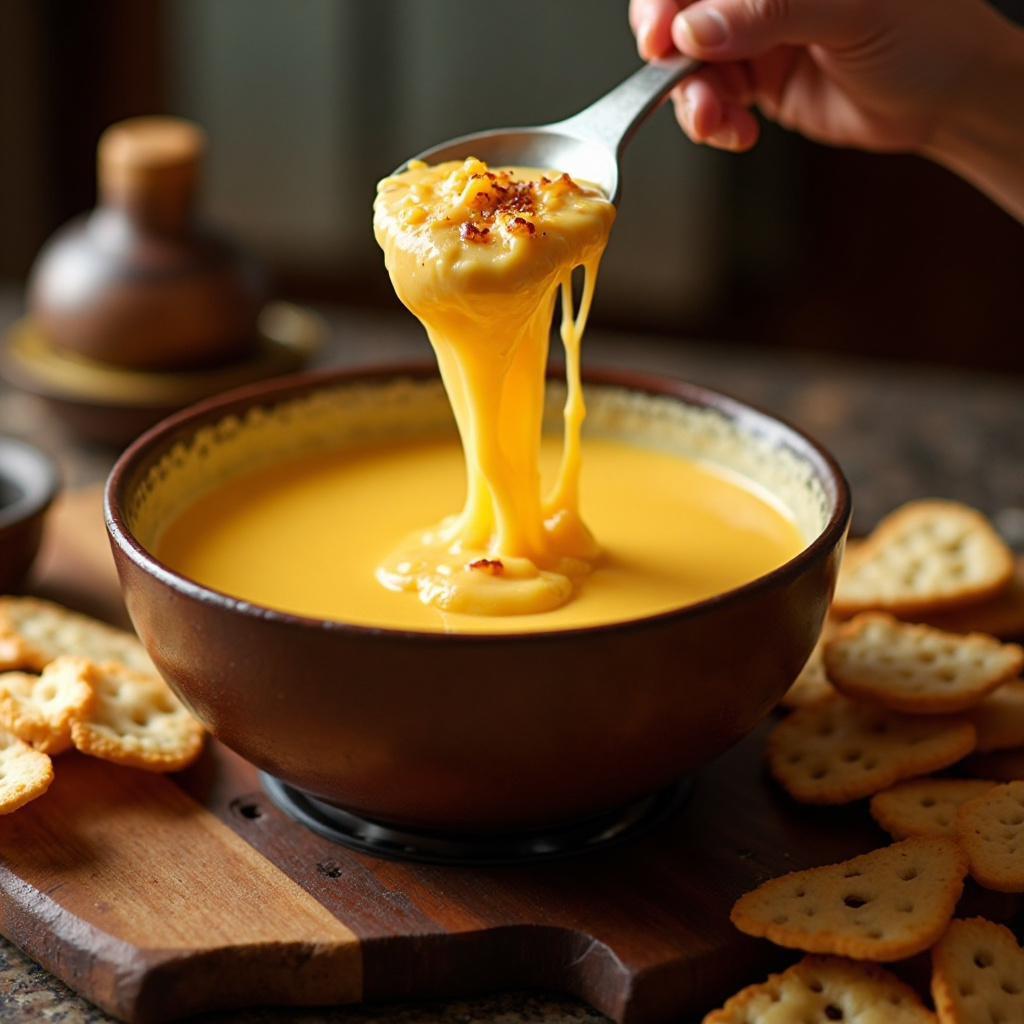 - Retira del fuego y deja que la fondue repose unos minutos antes de servir para permitir que los sabores se mezclen. Sirve caliente en un recipiente adecuado para fondue con las galletas maría o rodajas de pan disponibles para dipping.