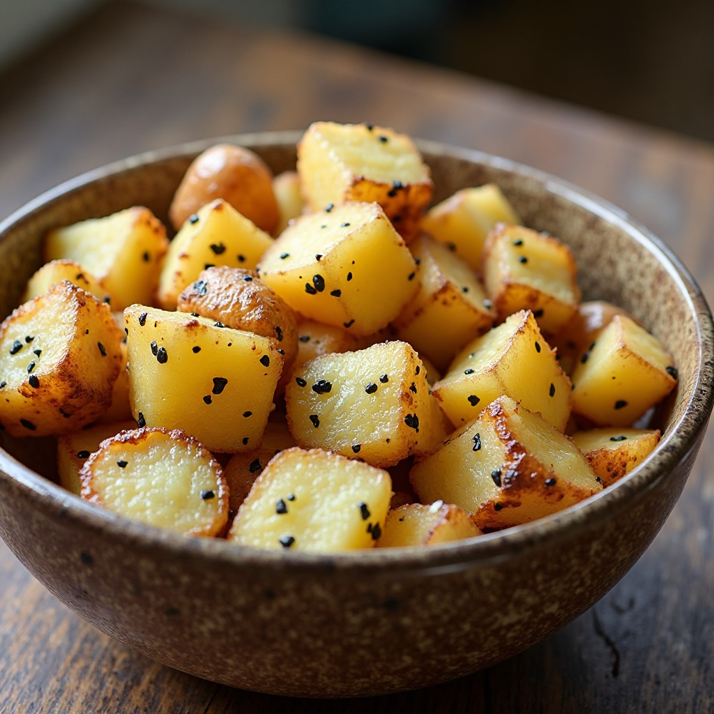 2. En un tazón, mezcla la harina con un poco de sal y pimienta. Calienta el aceite en una sartén grande a fuego medio-alto. Agrega las patatas en cubos a la sartén, cocínalas hasta que estén doradas y crujientes (aproximadamente 5-7 minutos por lado). Retira y coloca en papel absorbente para eliminar el exceso de aceite.