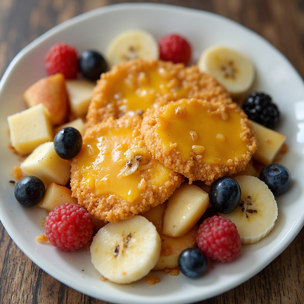 Stevensville es famosa por sus productores locales de queso artesanal, un ingrediente estrella en esta receta. Este plato combina el queso frito crujiente con una ensalada de frutas frescas, creando un contraste perfecto de sabores y texturas. Ideal para disfrutar con un grupo o simplemente como un tentempié sabroso.