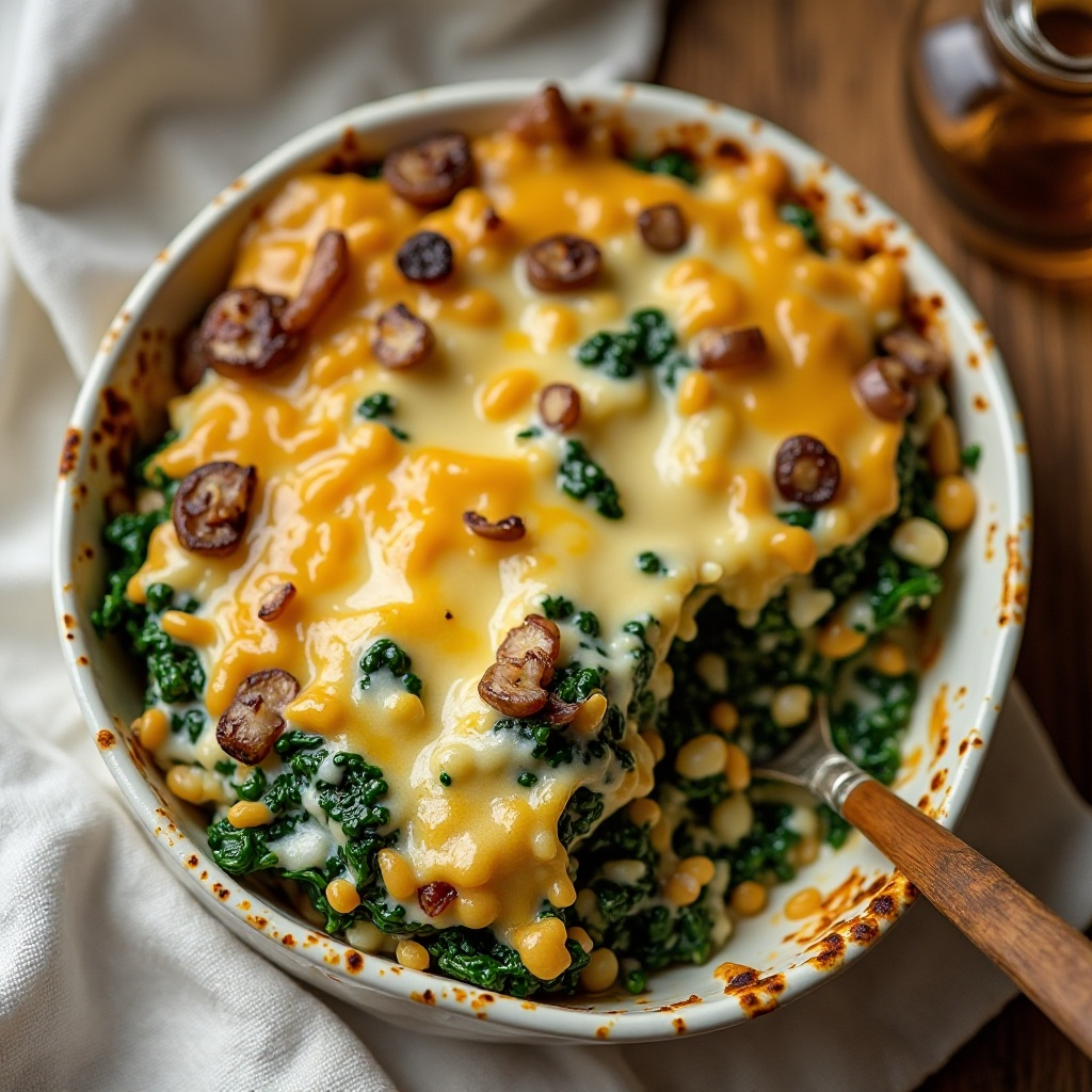 Este plato es una fuente de proteínas gracias a las espinacas y al queso. La cebolla y el queso fundido ofrecen vitaminas esenciales. Para una versión más ligera, puedes optar por un queso menos graso o reducir la cantidad de mantequilla utilizada en la preparación.