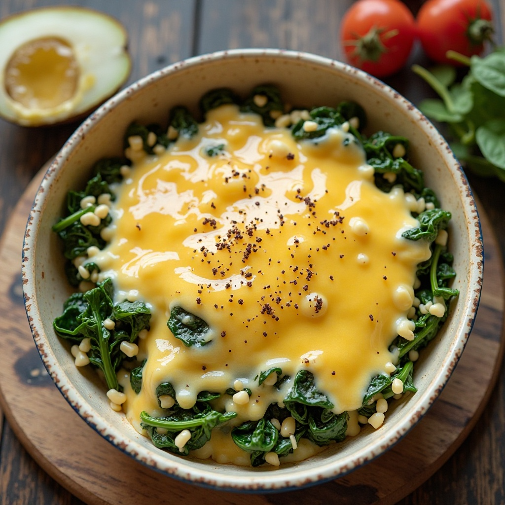 Este plato es una excelente opción para aquellos que buscan incluir más queso en su dieta. Los Quesos de Klein Farms son naturalmente bajos en grasa y proporcionan proteínas esenciales. Añadir espinacas aumenta el contenido de fibra y vitaminas, haciendo esta receta saludable y sabrosa.
