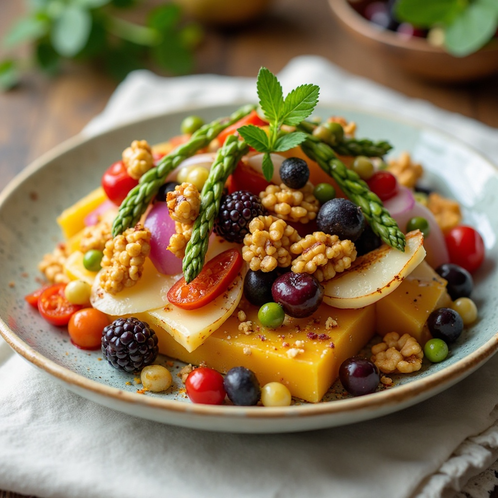 - Sirve la ensalada junto a los trozos de Queso Idiazabal crocante, disfrutando de las texturas contrastantes y sabores agridulces.