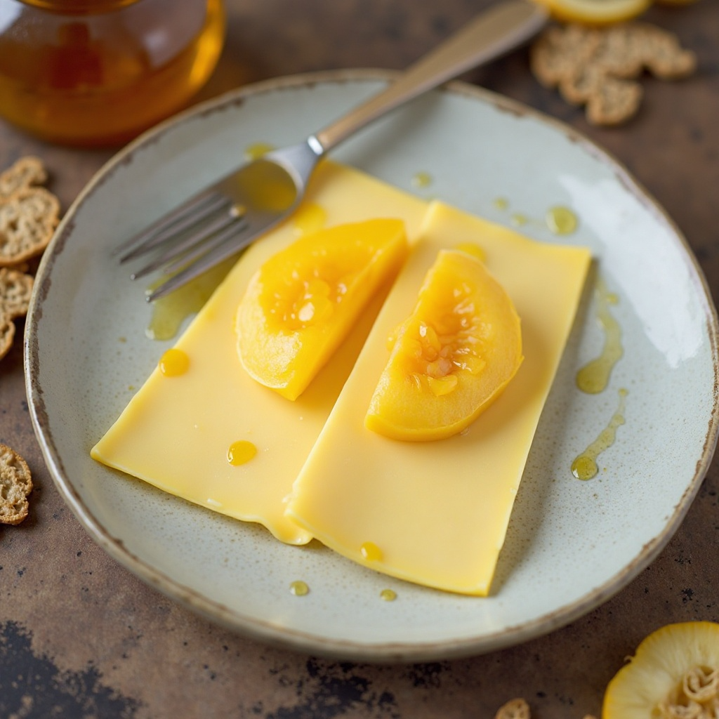 - Si deseas, puedes añadir un pequeño trozo de membrillo encima de la miel para un contraste dulce y ácido adicional. Este paso es opcional y depende del gusto personal.