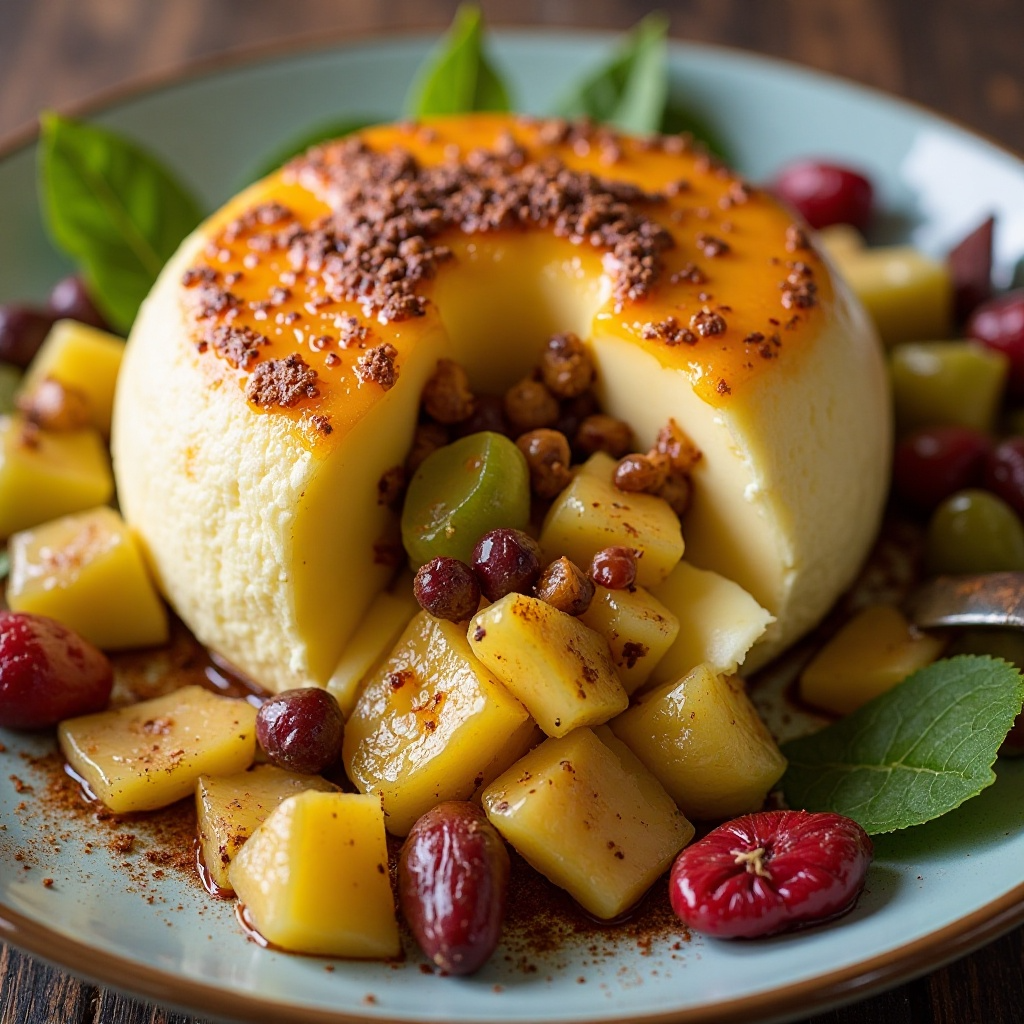 El queso relleno es una especialidad de Sancti Spíritus, Cuba, un lugar conocido por su queso blanco de sabor suave. Esta receta presenta un queso local que se llena con una mezcla deliciosa de frutas tropicales y especias, resultando en un plato único y lleno de colores y sabores caribeños.