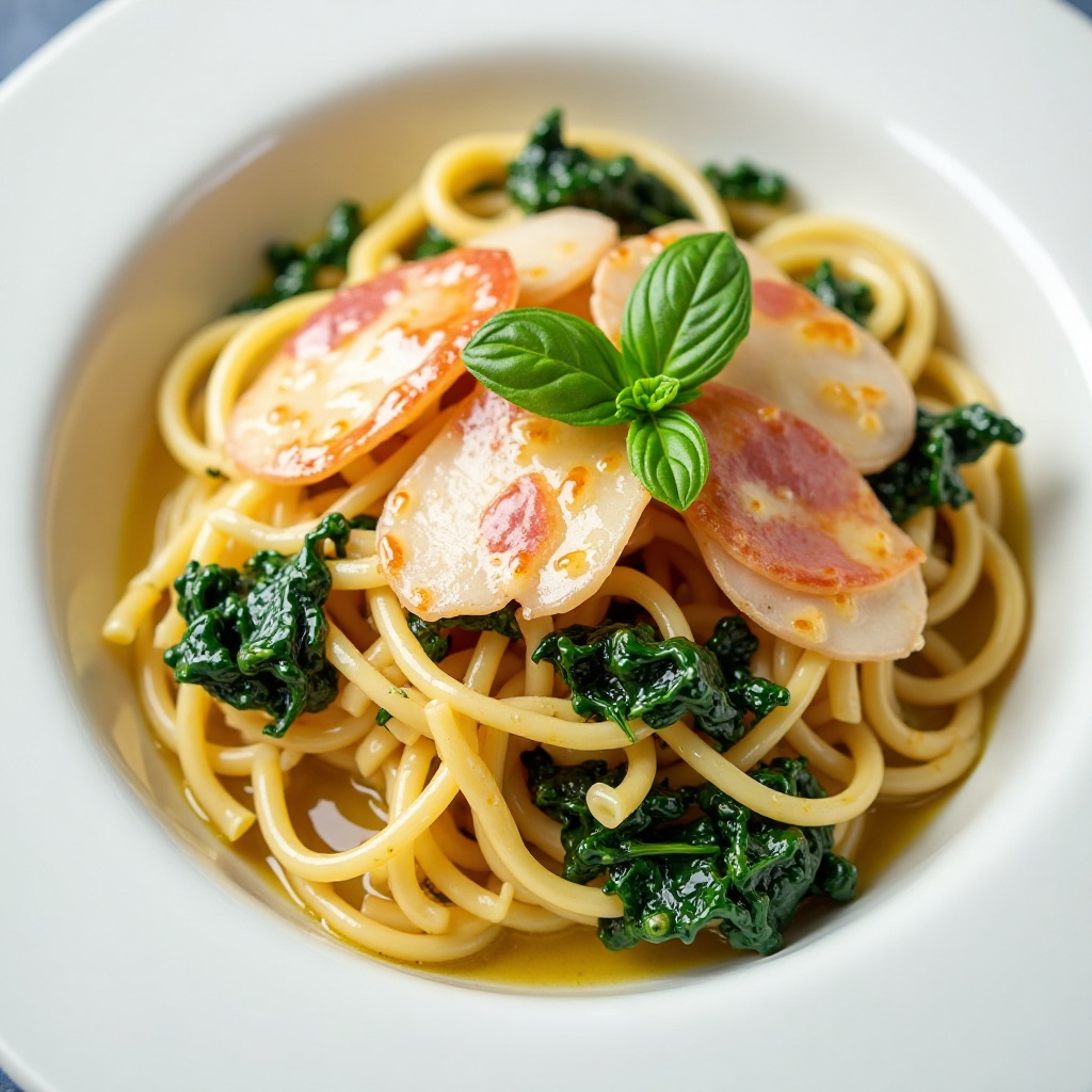 Este plato es una combinación saludable de proteínas magras (del queso y el jamón) y vegetales (las espinacas). La pasta, al ser preparada con moderación, puede complementar un plato balanceado. Asegúrate de elegir productos locales y de calidad para maximizar los beneficios nutricionales y apoyar a los productores artesanales locales.