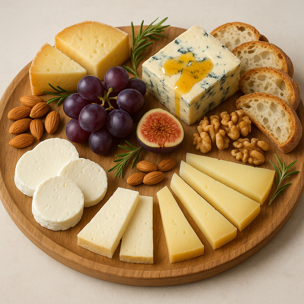 Los quesos de la comarca de Banyoles, en la región de Cataluña, son una joya gastronómica elaborada de manera artesanal con leche de cabra, oveja o vaca. Este plato combina quesos locales de diferentes texturas y sabores, acompañado de frutas, frutos secos y pan rústico. Perfecto para compartir en una mesa de tapas o como parte de una cata de quesos.