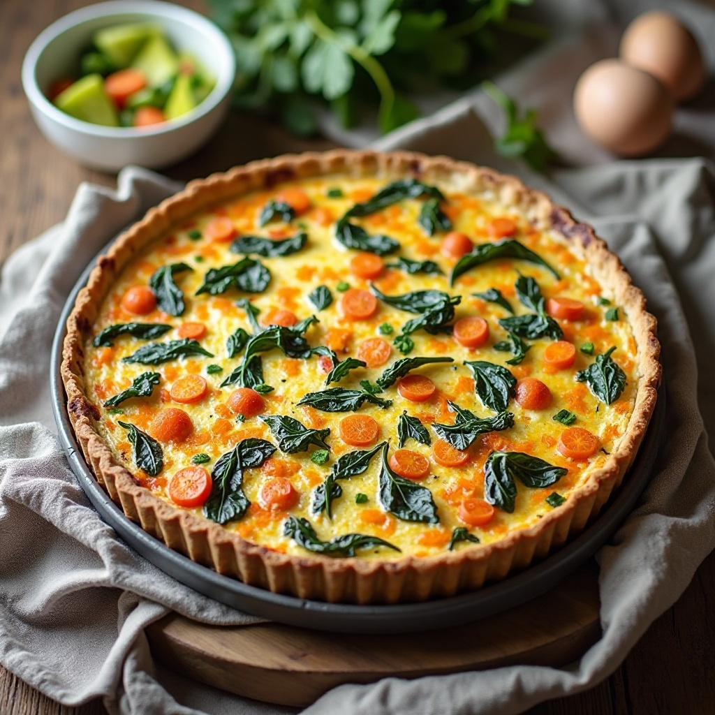 Este quiche es rico en nutrientes gracias a los espinacas, que aportan fibra y vitaminas, así como a la zanahoria, fuente de beta-caroteno. La opción de usar crema agria light también ayuda a mantener la receta más ligera y saludable. Al incluir granos enteros y verduras, es ideal para quienes buscan una dieta equilibrada y nutritiva.