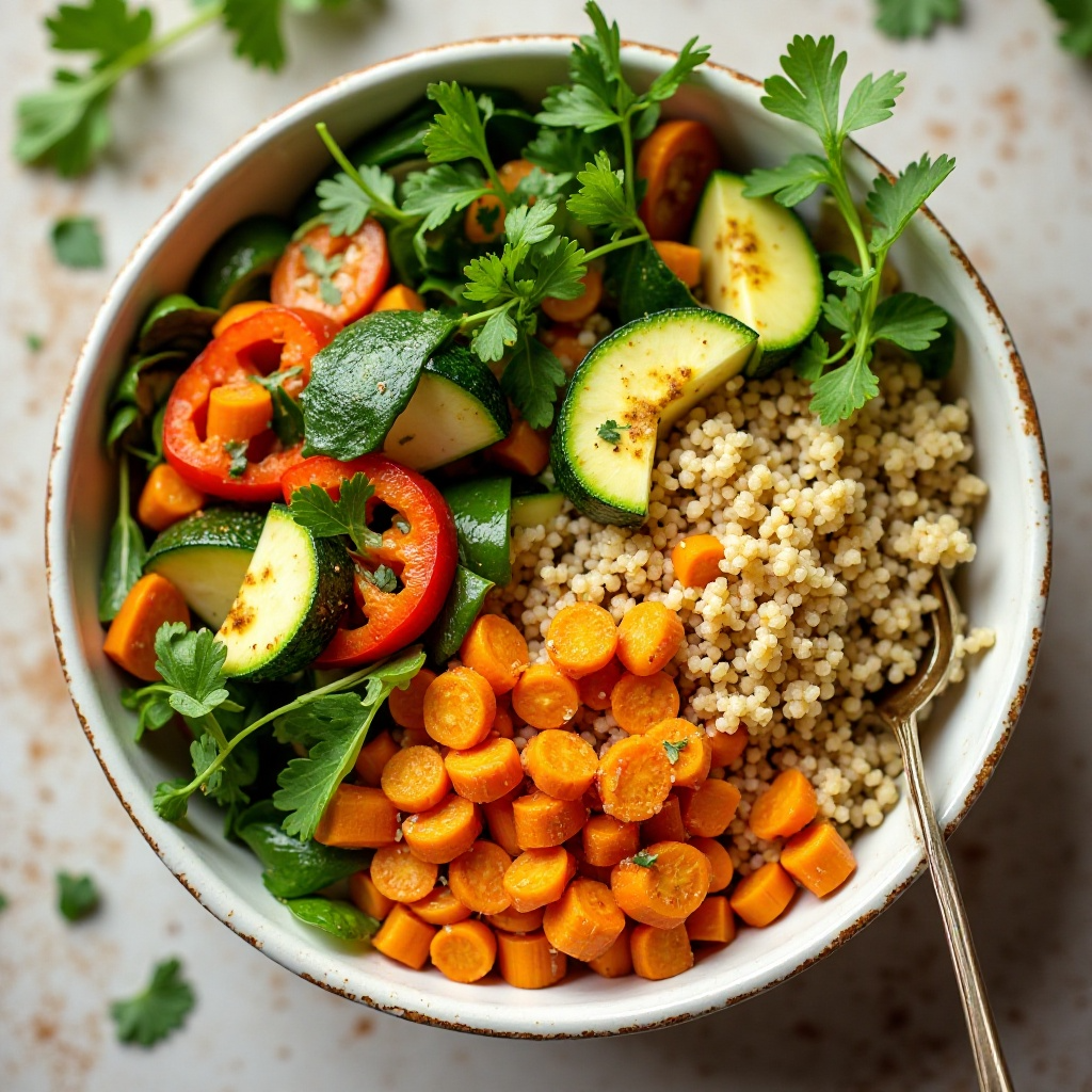 Este bowl de quinoa es una opción vegana y saludable ideal para aquellos que buscan alimentos nutritivos en su alimentación. Originaria de los Andes, la quinoa es un pseudocereal altamente valorado por su contenido de proteínas y fibra. Este plato se presta muy bien a personalizaciones según las preferencias vegetales y dietéticas.