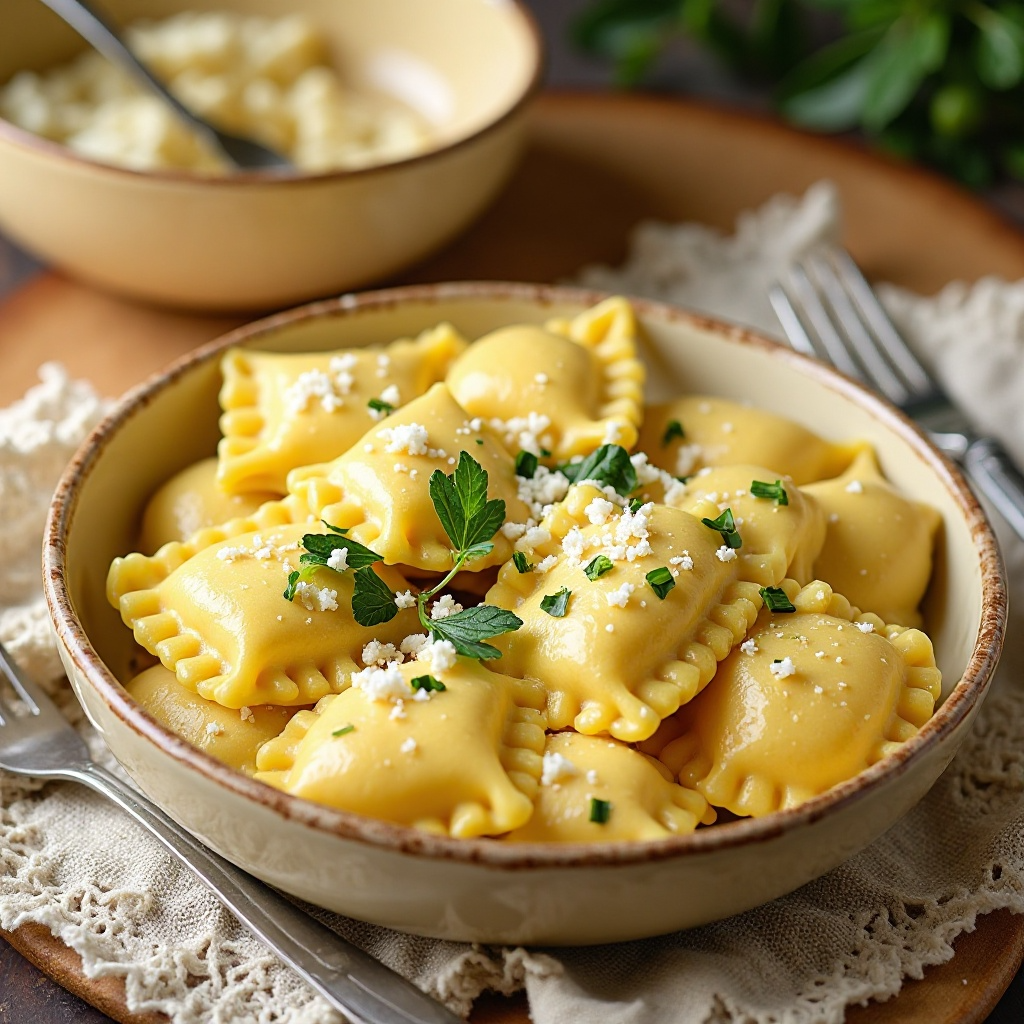 La pasta fresca es una opción saludable, proporcionando energía gracias a su contenido de carbohidratos complejos. El queso pecorino es rico en proteínas y contiene calcio, lo que puede ayudar a fortalecer los huesos. Para adaptar esta receta a dietas específicas, considera opciones de rellenos alternativos o reducciones en la cantidad de mantequilla y queso.