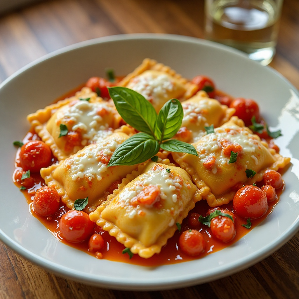 - Hornea a 200°C (400°F) durante 10-15 minutos, o hasta que los ravioles estén dorados y el queso esté fundido.