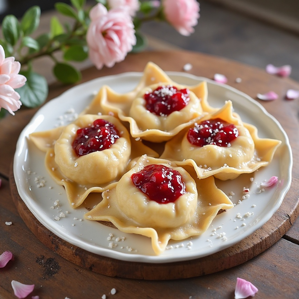 - Deja reposar la masa durante 15 minutos. Luego, divide la masa en pequeños trozos y haz raviolis, cubriendo el relleno de mermelada dentro de cada uno. Asegúrate de no sobrellenarlos para evitar que se rompan durante el cocido.