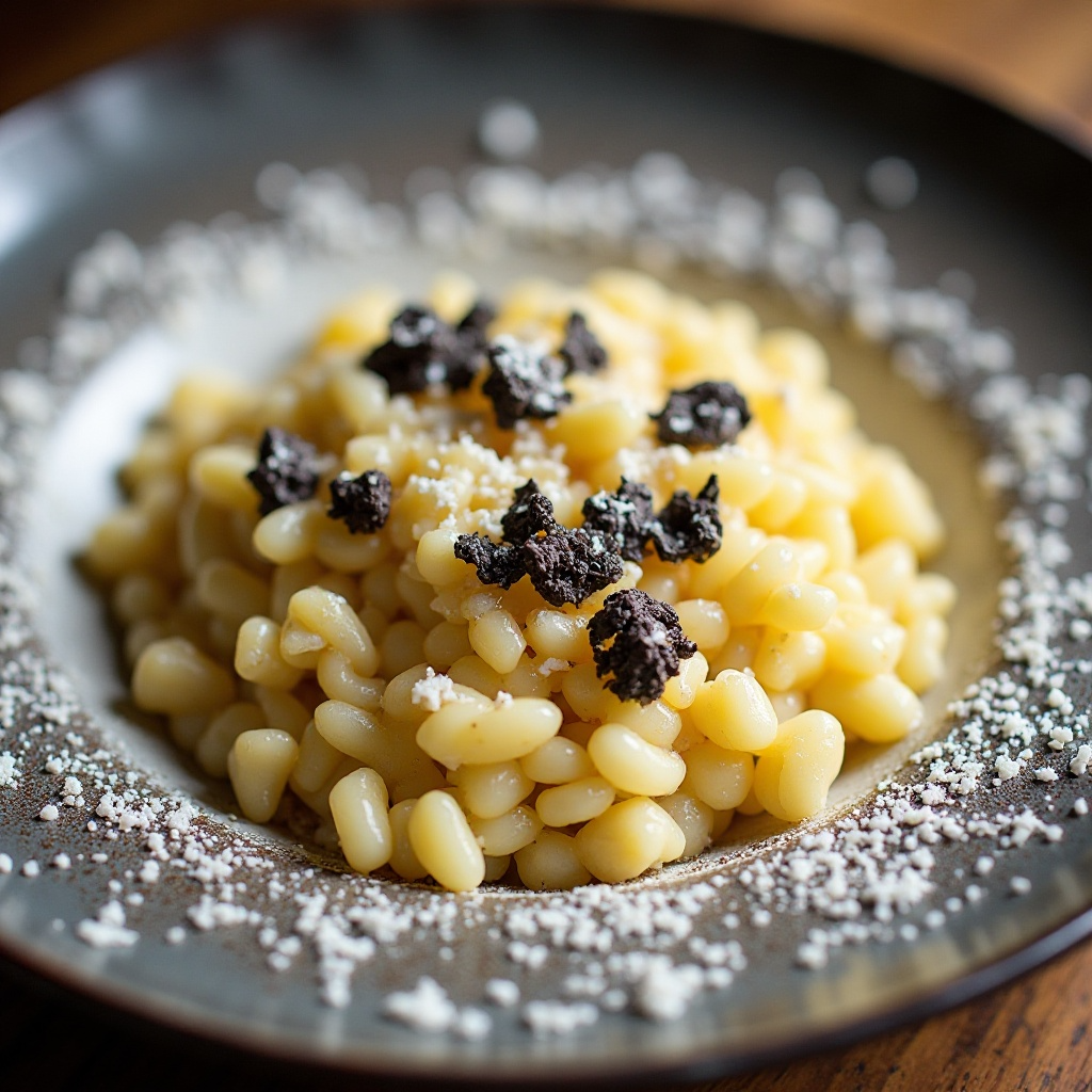 Norcia, una pequeña ciudad ubicada en la región Umbría de Italia, es famosa por sus trufas negras, una de las más apreciadas a nivel mundial. Este risotto, preparado con truffa di Norcia, celebra la exquisitez y el sabor intenso de este ingrediente único. Perfecto para ocasiones especiales o como un plato destacado en cualquier menú.