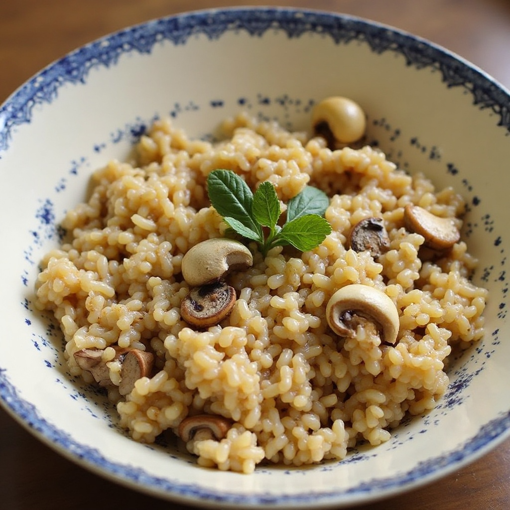 Este risotto es una opción saludable gracias al arroz, fuente de energía y fibra, y al vino, que aporta antioxidantes. Las setas son ricas en vitaminas y minerales. Para aquellos con restricciones alimentarias, puedes optar por un caldo de verduras sin sal o utilizar otro tipo de vino dependiendo de las preferencias dietéticas.
