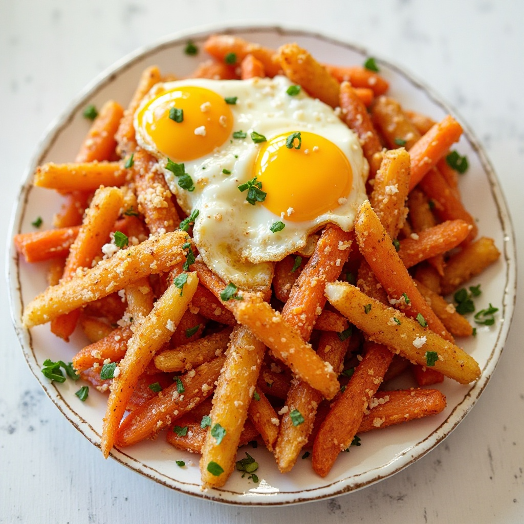 - Calienta un poco de aceite en una sartén grande a fuego medio-bajo. Agrega las rodajas de patatas y zanahorias, dándoles un giro constante hasta que estén doradas y tiernas (alrededor de 15-20 minutos). Retíralos con ayuda de una espumadera para una textura crujiente.