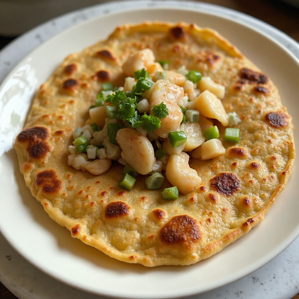 El Roti Canai es una especialidad malaya, originada en Kuala Lumpur, conocida por su textura crujiente y delicioso sabor. Esta receta innova al incorporar un toque de ceviche de mariscos típico de Kota Kinabalu, que añade frescura y un contraste de sabores a esta tradicional panificación. Este plato es ideal para quienes buscan una comida equilibrada y llena de sabor.