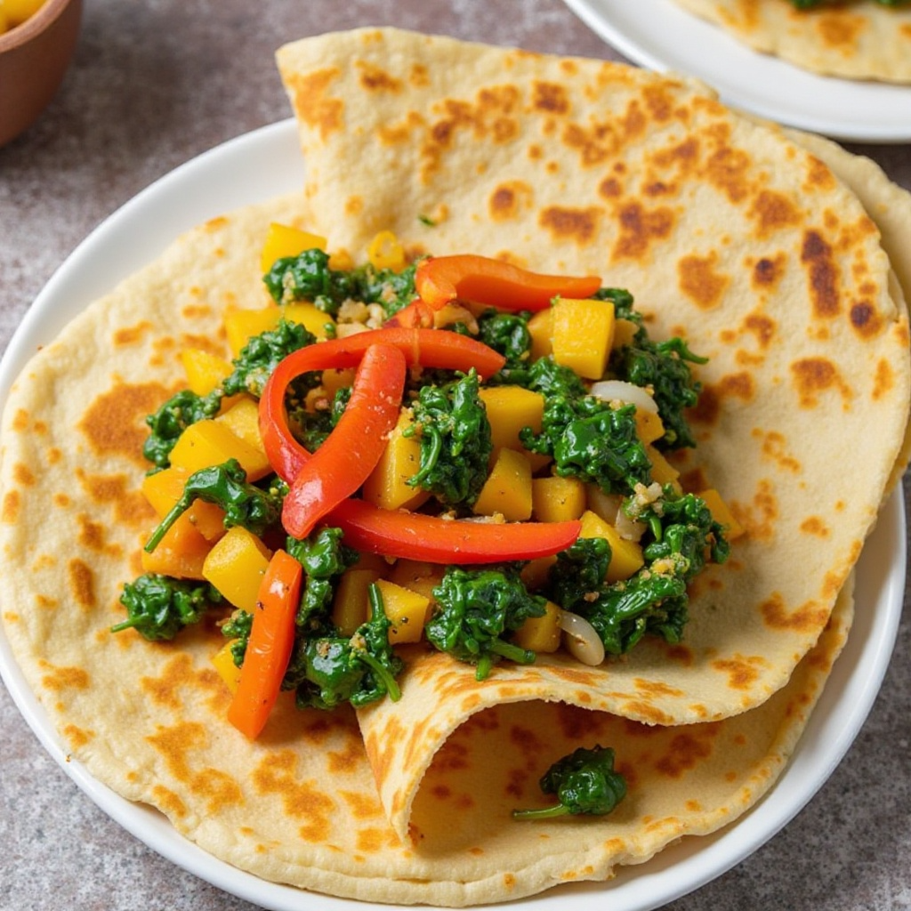 El roti canai es un pan tradicional indio popular en toda Malasia y Singapur, especialmente apreciado en la región de Kuala Belait, Brunei. En esta versión, combinamos el roti canai con un sauté de verduras frescas que refleja los sabores locales de Brunei. Este plato es ideal para aquellos que buscan una comida equilibrada y sabrosa, perfecta para el almuerzo o una cena ligera.
