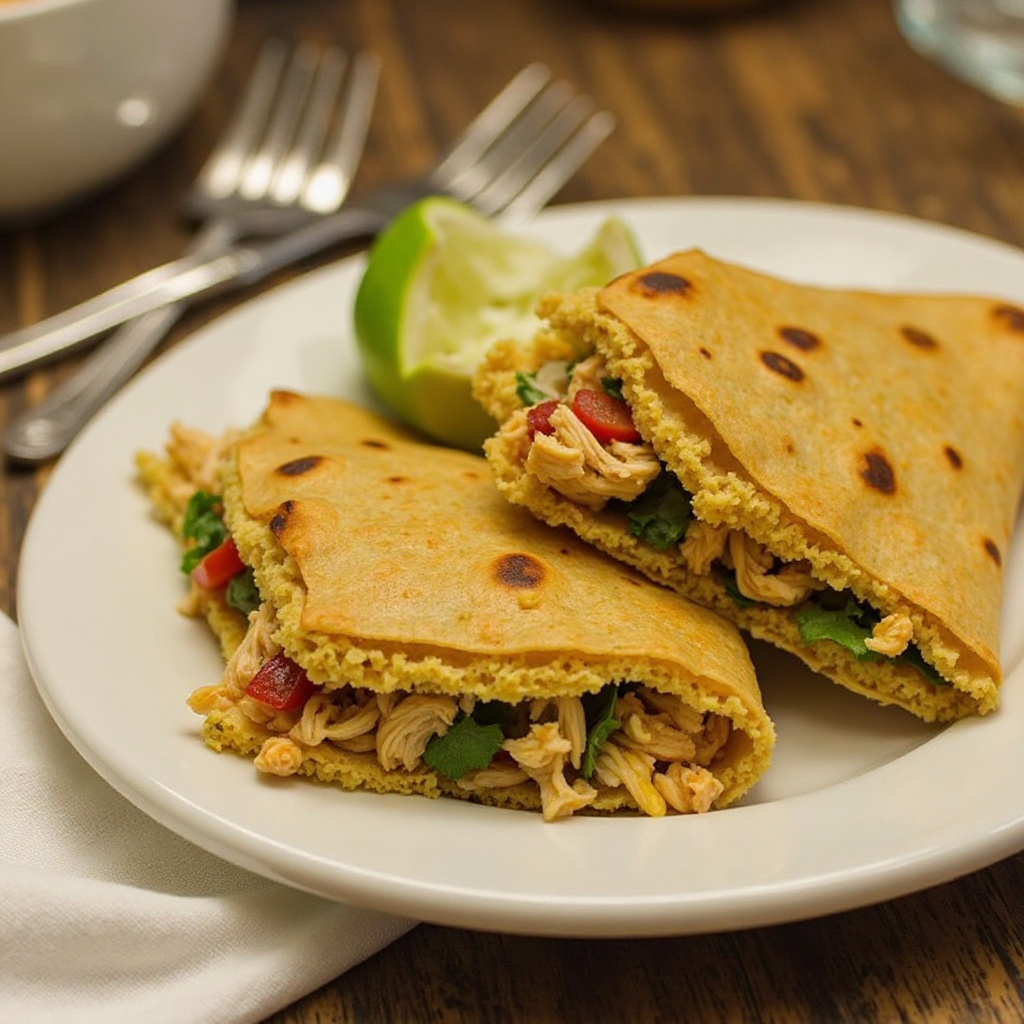El roti es un elemento icónico de la cocina trinitense, originario del subcontinente indio, pero profundamente integrado en la cultura culinaria de Trinidad y Tobago. Este roti de pollo está enriquecido con cilantro, que añade un toque refrescante y afrutado. Es un plato versátil que puede disfrutarse como entrada o plato principal.